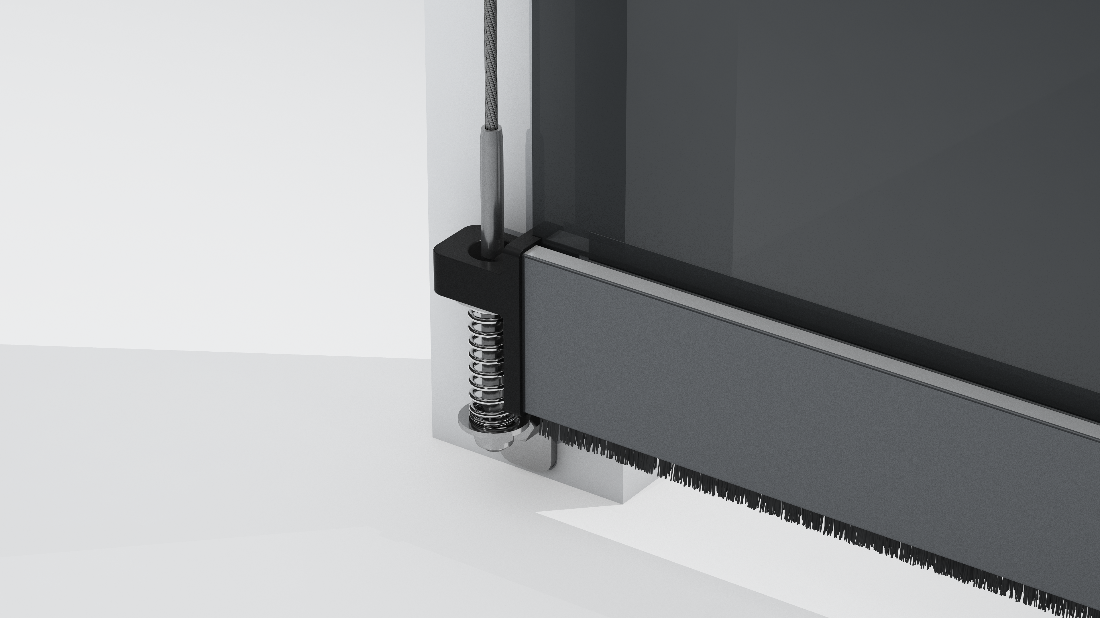 Tkanina ochronna osłony jest bezpośrednio połączona z dwuczęściową prowadnicą za pomocą zgrzewanych zamków w technologii ZIP. Napięcie płótna jest regulowane klipsami mocowanymi w prowadnicy. Taka metoda łączenia umożliwia płynne przesuwanie tkaniny w szynie przy jednoczesnym doskonałym jej napięciu, a także kompensuje czynniki zewnętrzne takie jak podmuchy wiatru, silny deszcz lub grad.