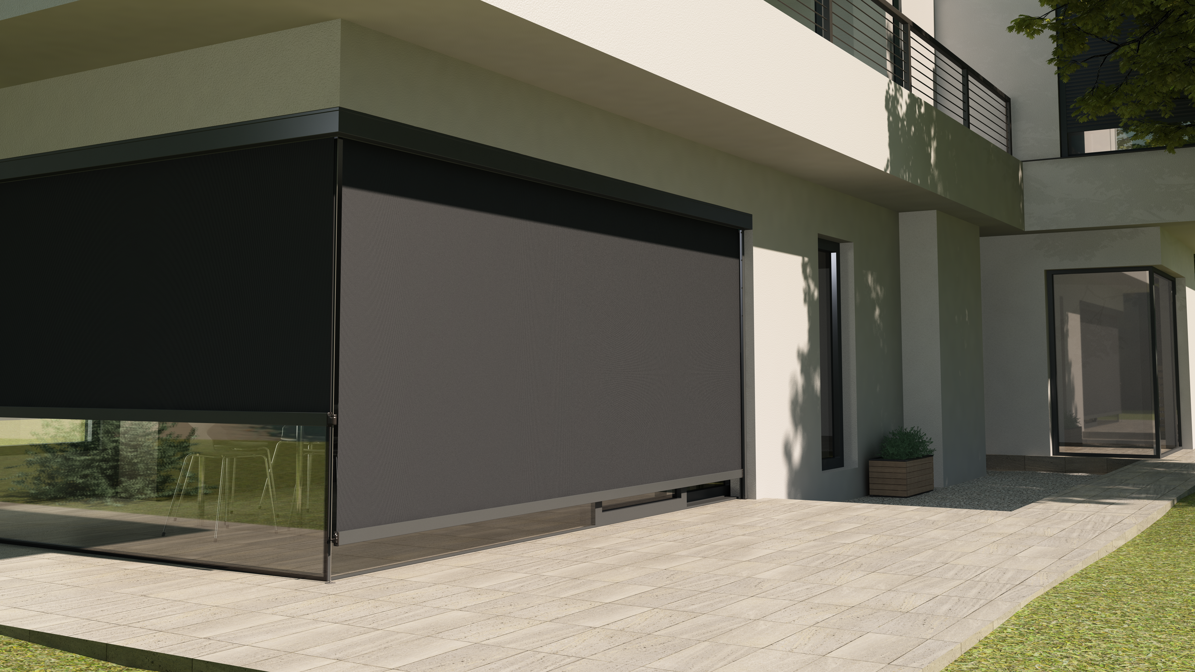 Das textile Schutzgewebe wird direkt in die zweiteilige Führungsschiene mit Clips in Zip-Lock-Technik integriert. Diese Art der Verbindung trägt zum reibungslosen Gleiten des Gewebes in der Führungsschiene und zur perfekten Spannung des Gewebes bei und gleicht auch äußere Natureinflüsse aus - starke Windböen, Regen, Hagel usw.