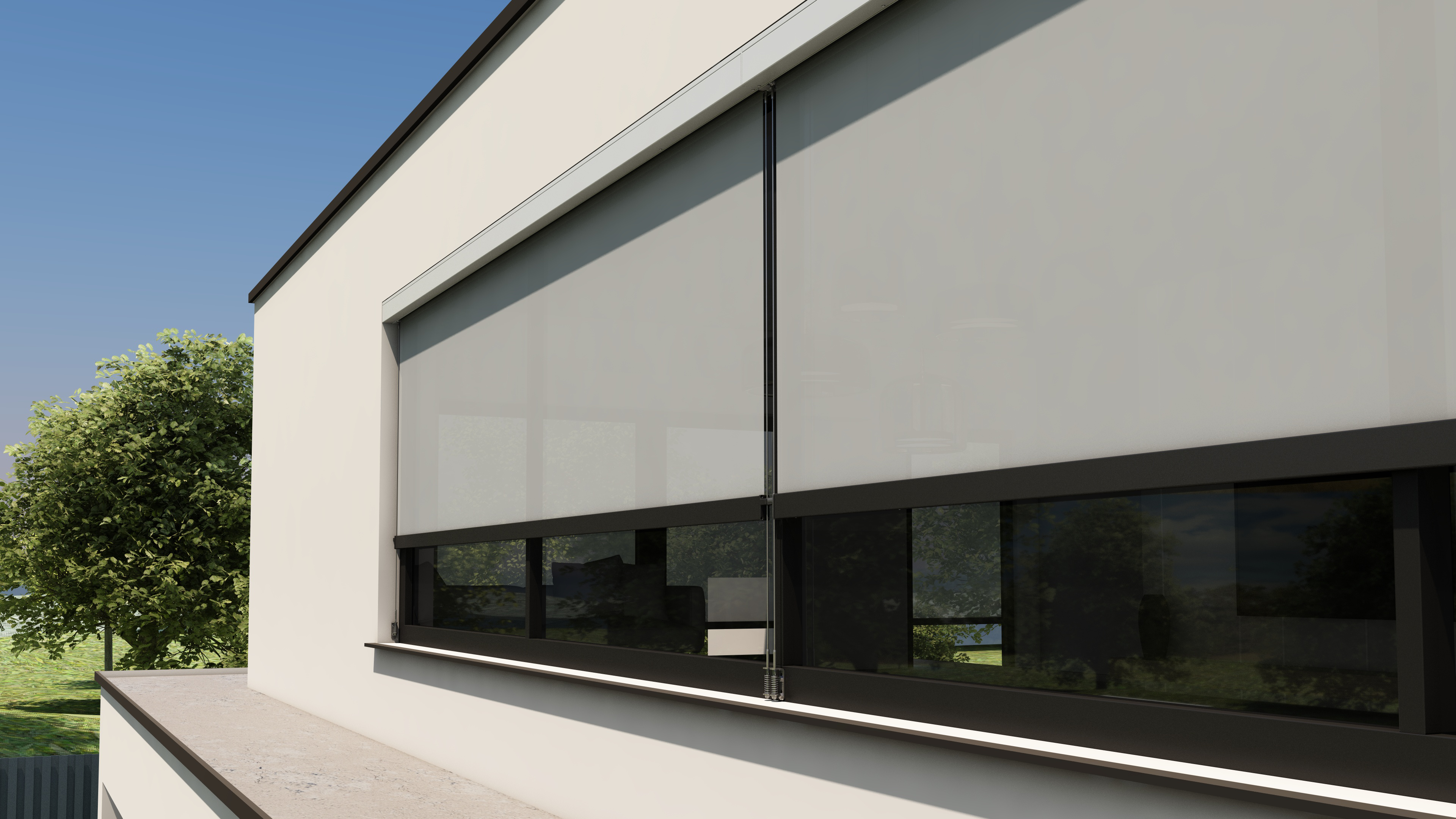 Thanks to the variety of design options, the VS.Z system is suitable for different types of installation, e.g. on the top of the window, on the façade wall, in the opening or in the lintel. In addition, the slim guide rails in combination with protective boxes provide a discreet integration of the sun shading system.